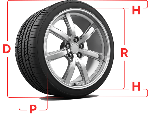 D - диаметр шины