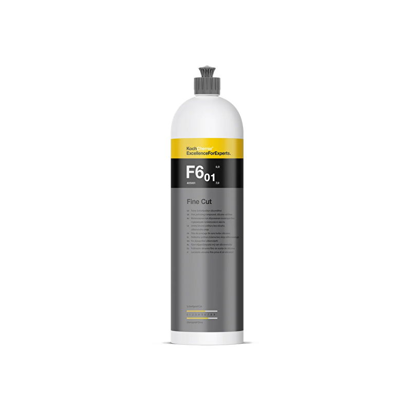 KochChemie Fine Cut F6.01 – среднеабразивная полировальная паста, предназначенная для удаления легких и средних царапин, следов окисления и небольших дефектов лакокрасочного покрытия. Используется после грубой пасты (Heavy Quick Cut) для подготовки поверхности к финишной полировке.