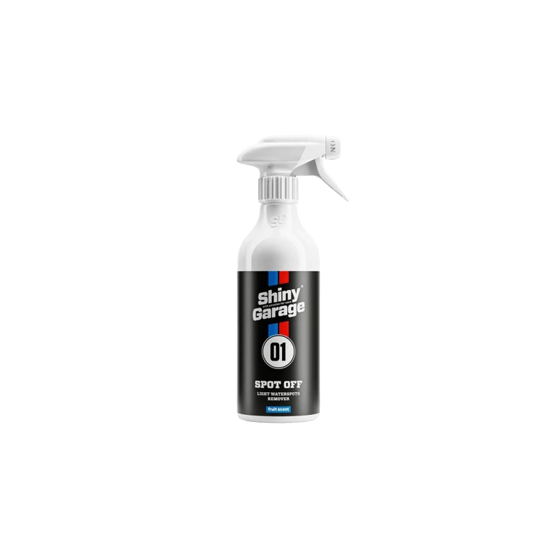 Shiny Garage Spot Off — средство для удаления водного камня и известкового налёта с кузова автомобиля. Эффективно растворяет следы от жёсткой воды, безопасно для лакокрасочного покрытия и защитных покрытий.