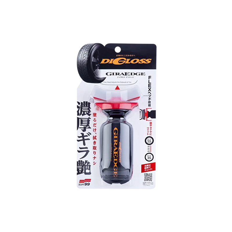 SOFT99 DiGloss Gira Edge это средство‑чернение для шин с водной формулой и встроенным войлочным аппликатором. Оно создаёт глубокий глянцевый «эффект мокрой шины» без липкости, не притягивает пыль и легко наносится даже на низкопрофильные шины. Формула образует ровный, плотный блестящий слой, который подчёркивает внешний вид резины, придавая ей аккуратный и насыщенный блеск без разводов.