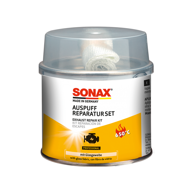 Ремонтный комплект SONAX включает ремонтную пасту и высокотемпературную стекловолоконную ленту для быстрого и надёжного устранения трещин, дыр и утечек в выхлопной системе автомобиля. Обеспечивает газонепроницаемое, долговечное уплотнение, устойчивое к очень высоким температурам. Не содержит азбеста.