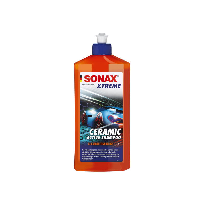 SONAX XTREME Ceramic Active Shampoo - концентрированный автошампунь для ручной мойки автомобиля с активными керамическими компонентами. Эффективно удаляет дорожную грязь, пыль и органические загрязнения, одновременно усиливая гидрофобный эффект и блеск лакокрасочного покрытия. Поддерживает и продлевает действие керамических покрытий и восков, облегчает последующую сушку и не повреждает поверхность при правильном применении.